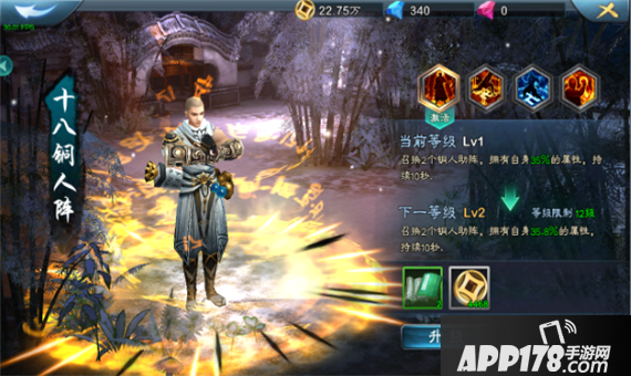 十八铜人阵:召换2个铜人助阵,拥有自身40%的属性,持续10秒.