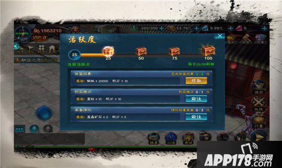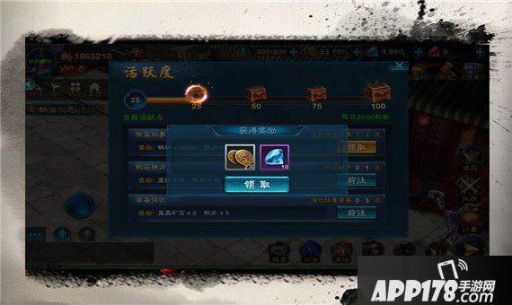 25活跃度:铜币、蓝钻