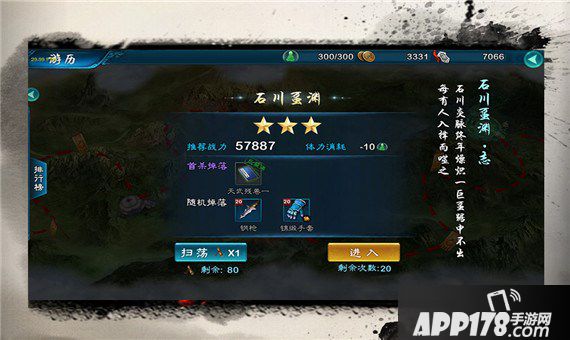 游历副本与主线相同,胜利之后可以获得翻牌机会,不同处在于, 三星通关游历副本之后,消耗扫荡卷可以进行扫荡,快速获得经验和道具。