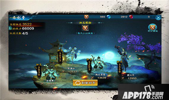 当进入名剑堂后,系统会根据我们的排名自动刷出4组队伍供我们选择,江湖侠客进退得当,取舍分明,正确选择一个合适的对手会决定本次战斗的成败。