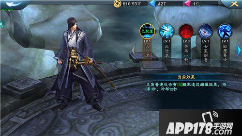 主角普通攻击有1%概率造成瘫痪效果,持续1秒,冷却10秒(心法效果随侠客星级提升)