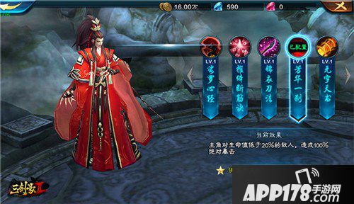 主角对生命值低于20%的敌人,造成100%绝对暴击。(心法效果随侠客星级提升)