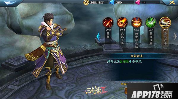 2.紫鸳的心法,为主角的暴击提供攻速,这里有必要说下,有人可能会问,我靠技能输出要攻速干嘛?请大家回忆一下自己在打副本的时候有没有遇到过释放技能的时候被击退,这样技能就放不出来了,攻击速度同时也是释放速度,释放速度快,被打断的几率也就低了吧,并且紫鸳庙会两日送,且有多种方法获得碎片,很容易升到五级心法,前期必选 。