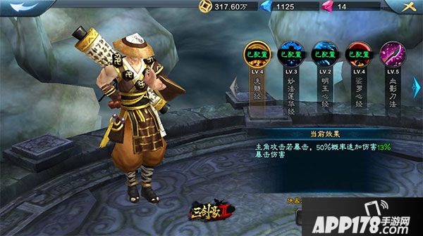 当然这几个紫色侠客的心法对于大部分玩家来说短时间内也是比较难以获取,那就先用着上面几个过渡吧,没有最好的搭配,只有最适合你的搭配,比如你暴击并不高,放一大堆暴击才能受益的心法那将会很悲剧,所以至少先把暴击堆起来。
