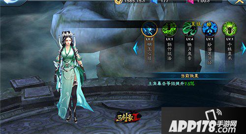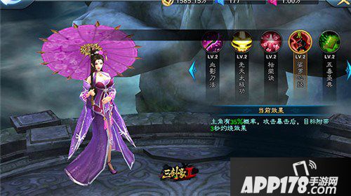 2.紫鸳的心法,为主角的暴击提供攻速,这里有必要说下,有人可能会问,我靠技能输出要攻速干嘛?请大家回忆一下自己在打副本的时候有没有遇到过释放技能的时候被击退,这样技能就放不出来了,攻击速度同时也是释放速度,释放速度快,被打断的几率也就低了吧,并且紫鸳庙会两日送,且有多种方法获得碎片,很容易升到五级心法,前期必选 。