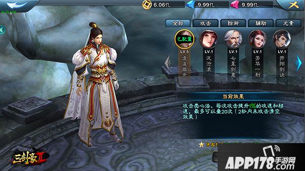 凌波微步:攻击类心法。每次攻击提升0.5%|1%的攻速和移速,最多可以叠20次(2秒内未攻击清空效果)