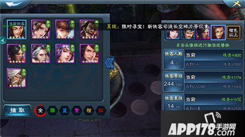主角和侠客都会有各自的人物招式技能,技能提升对于技能释放影响很大,因为每次提升都是百分比的提升。在秘籍比较难收集的情况下,玩家可以有选择性有计划的学习技能。主角为主,侠客为辅。当然要选择经常用到的侠客,并且防御性、输出型平衡发展、会对后期做活动有所帮助。