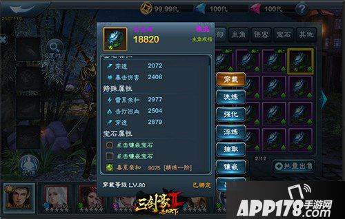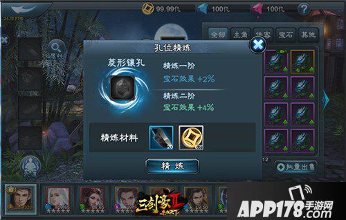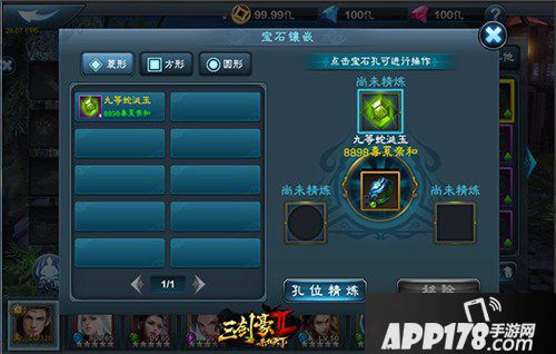 在橙装系统中,第三条新增功能,则是玉石孔的精炼系统。首先,选择一个装备,并进入这个装备的镶嵌戒面。