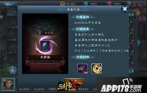 点击“打造”按钮,则可以进入橙装进阶界面,消耗铜板和一定数量的材料,即可将装备打造为橙装。