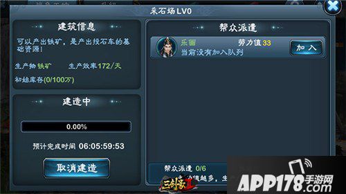 每个帮派成员都拥有其劳力值(劳力值与其战斗力相关),劳力值越高则建造越快,所以高战力的帮派成员应当被分配到最需要速度的地方,比如:在资源不足时需要高战力成员去采石场/伐木所生产资源,当资源足够需要大量攻城器械时则高战力成员需要掉往武备所与狼烟台。