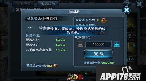 跨服帮战的玩法比较复杂,帮派的帮主需要仔细斟酌局势,有时甚至需要有一定的“外交手段”。否则,当您占据了类似于成都这种战略要道时,您面对可能会有4个其他帮派的对手。哪怕您手握3级城池的土地权,一旦被攻下,又没有其他的城池在手。大侠便只有重整旗鼓,从1级城池慢慢收复失地。由于考虑到该玩法的复杂度,我们也在游戏的帮助界面中对此玩法做了非常详细的说明。请一定要参考。