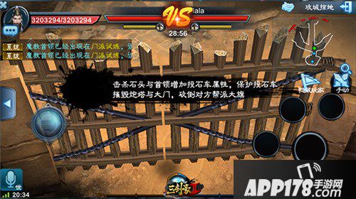 投石车会分三路刷新(若数量不足会优先刷新在中路),每45S刷新一波,它们具有强大的攻击力,以及很高的生存耐力,是推塔、推城门的主要战力。而且,击杀地图内的小怪、BOSS都能够提高投石车的属性。在敌方城门被摧毁后,投石车会自动消失,帮派大旗只能由玩家摧毁!