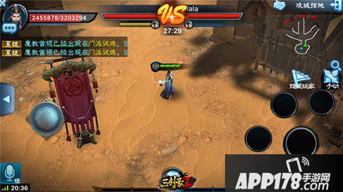 战斗的最终目标就是摧毁敌方的帮派大旗,当然时间到了旗子都还没倒就是守方胜利了。两边的帮派大旗都有城门防御,所以需要优先摧毁城门才能打到帮派大旗。图中,红色血条为双方大旗的血量,黄色血条则是双方城门的血量。注意,当时间消耗完,但没有一方的大旗被击倒。则守方获胜。