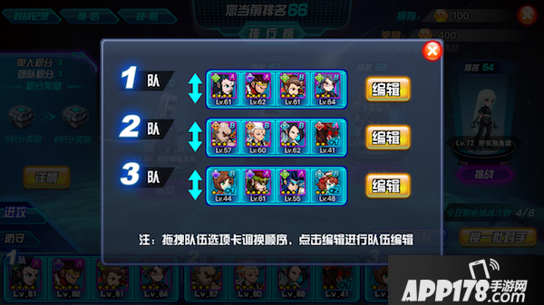 这里可以拖动调整队伍顺序,也能点击“编辑”进入该队伍布阵界面。