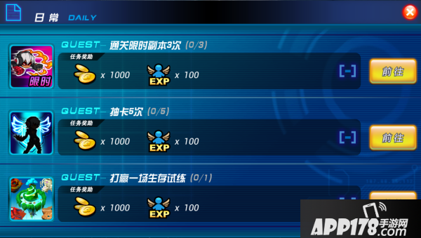 日常中包括每天玩家可以完成一次的任务,第二天会全部刷新,通过日常任务玩家可以获得金钱,道具和经验的奖励。