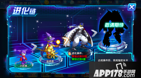 没错,看了上图,友友们肯定知道了,上面便是游戏数码兽进化变身的进化链,有没有很酷炫?每次达到进化提交,完成进化任务即可变身哦!