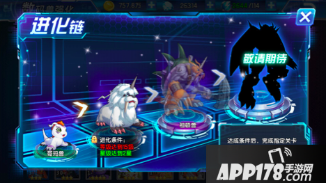 没错,看了上图,友友们肯定知道了,上面便是游戏数码兽进化变身的进化链,有没有很酷炫?每次达到进化提交,完成进化任务即可变身哦!