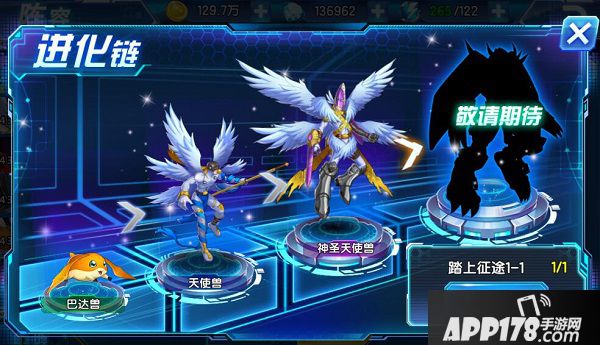 每次达到进化提交,完成进化任务即可变身哦!当然作为一个出厂4星的数码兽,很容易就进化到了神圣天使兽