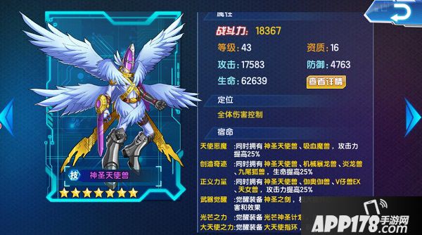 正义力量:同时拥有神圣天使兽、伽奥伽兽、V仔兽EX、天女兽,攻击力提高25%