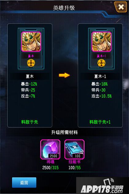 升级需消耗对应的材料,材料不足可以花费金币升级;