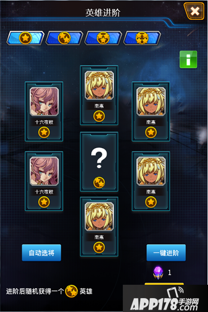 英雄进阶,是将6个同星级英雄进阶合成为1个高1星的英雄。是高星级英雄的重要来源。