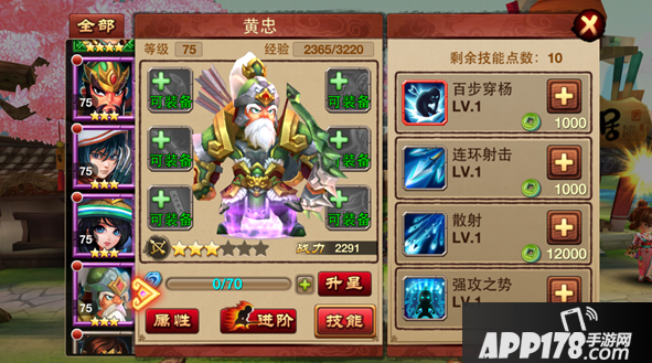 武将说明:蜀国老将,蜀国五虎上将之一。射箭技术号称百发百中,在定军山一战中斩杀名将夏侯渊。