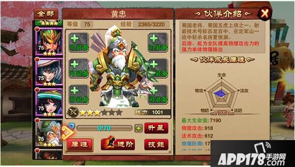 武将说明:蜀国老将,蜀国五虎上将之一。射箭技术号称百发百中,在定军山一战中斩杀名将夏侯渊。