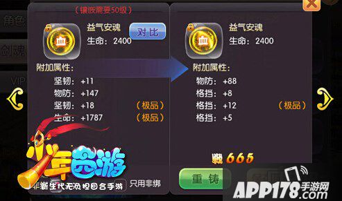 然而剑魂真正厉害的地方,在于它尽管已经有了如此厉害的属性,但依旧还有继续提升的潜力和空间。吞噬升星、剑魂重铸都是深挖剑魂潜力的方式,尤其是重铸,往往能在某一属性上获得极品的加成哦!深挖血色剑魂的潜力,战力逆天超越如来也不是梦!