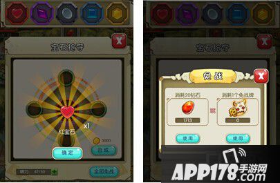 不同宝石所需宝石碎片数量不同,抢到某种宝石合成所需全部碎片后,即可消耗一定数量石币进行合成,从而获得完整宝石了。如果担心被其他玩家偷袭抢走自己的宝石碎片,也可以消耗免战牌或钻石进行保护,避免被抢。