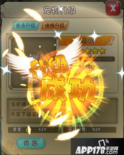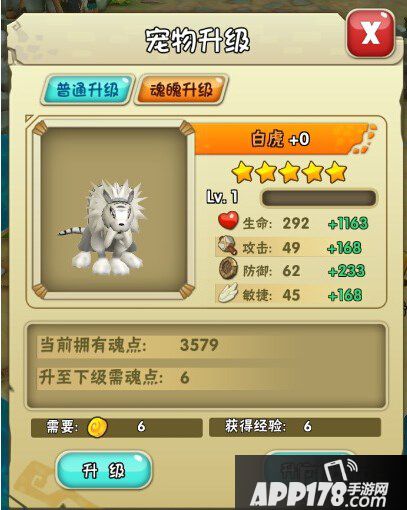 宠物升级是提升宠物全属性最直接的方法,玩家在阵容界面选择想要升级的宠物后,在界面右下方点击“升级”键,即可进入宠物升级界面。