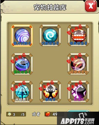 当玩家角色提升至9级时,且对应角色、宠物进阶达到1阶及以上时,就可以使用“技能更换”功能了。玩家在阵容界面点击相应角色、宠物想要替换的技能图标,在弹出的技能介绍弹窗中,点击“更换”进入宠物技能库,而后点击“转动”键消耗龙蛋或“技能学习器”即可由技能库已解锁技能中随机获得新技能了。角色、宠物进阶等级越高,对应角色、宠物的技能库解锁技能数量越多。