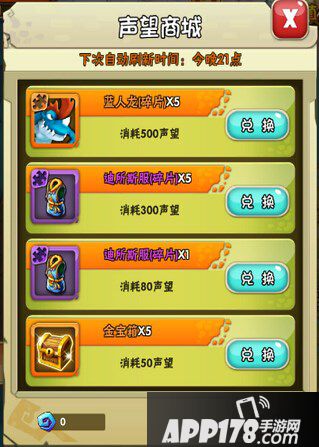 声望商城每日21点刷新商品列表,玩家也消耗声望进行随时刷新。在声望商城中兑换宝物需要使用声望,声望可由副本活动中获得。
