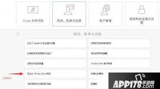 第五步:在弹出列表中选择“无法从iTunes购买”