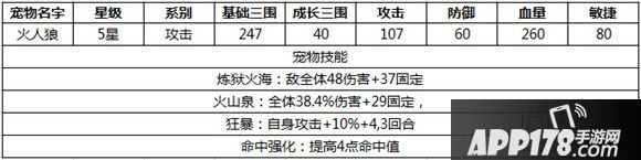 火狼人是只群体伤害的宠物,自身有狂暴加攻击的技能,两个AOE技能打全体,还是可以作为输出宠使用的。