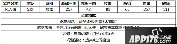 风人狼是输出型的宠物,在人狼中属于比较强大的。AOE攻击,还有沉默对方的几率,自身闪避也很高。输出也不俗。