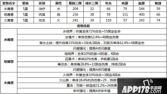 水魔兽、地魔兽和火魔兽属性、成长、技能分析