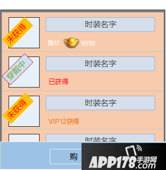 购买: 预览自己的时装, 可购买且尚未拥有时, 显示购买按钮。
