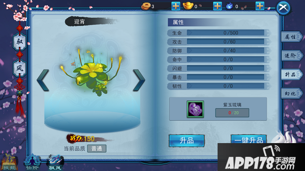 点击“升品”按钮,系统会自动检测升品道具是否满足个数要求,若升品道具满足个数,则扣除对应的物品进入升品操作,每进行一次升品操作,会对应提升一定的属性值。
