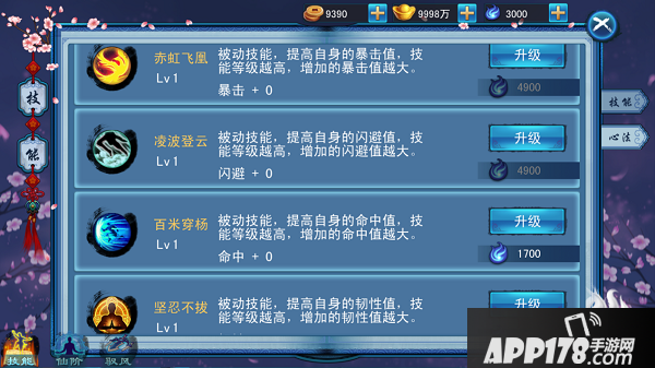 游戏中的技能分为主动技能(种族技能)及心法(被动技能)2大类,升级技能及心法需要消耗真气,只有满足该技能所需消耗的真气才可以升级,不同技能所需消耗的真气也不同,技能越高消耗的真气也越多。