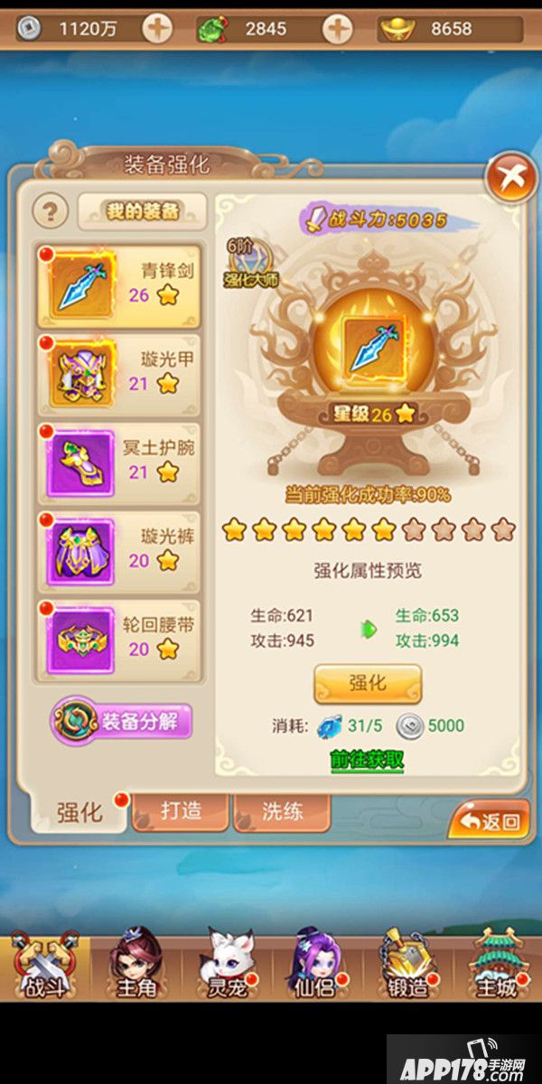 装备的养成系统分为“强化”“锻造”“洗练”三大部分,下面我们来分别详解一下。