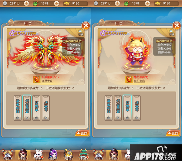 除此之外,翅膀皮肤同样可以改变翅膀的外观!皮肤是独立于升阶的另一套功能,通过许愿龙珠、装备商店等途径可以获得翅膀皮肤,玩家激活后不仅可以获得皮肤的外观,而且也可以获得相应的属性加成,提升战斗力。游戏的后续版本仍然会不断增加新的、更加酷炫的皮肤,令君放肆畅游八荒。