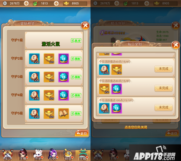 在帮派活跃度中,完成相应的任务获取经验,可升级帮派守护,而帮派守护等级提升后,便可领取相应的奖励了,其中便有帮贡奖励。