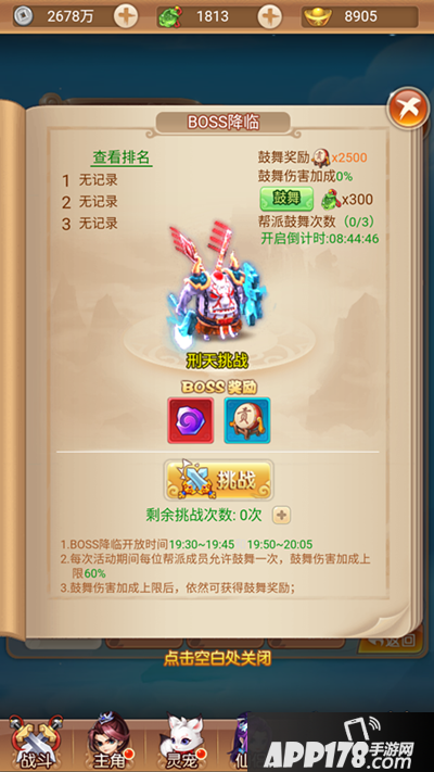 帮派boss分为帮派地图中的帮派boss入侵和界面中的帮派boss降临两种,且均为固定时间段开放,参与可获得帮贡奖励,所以请记好时间,去打boss吧!