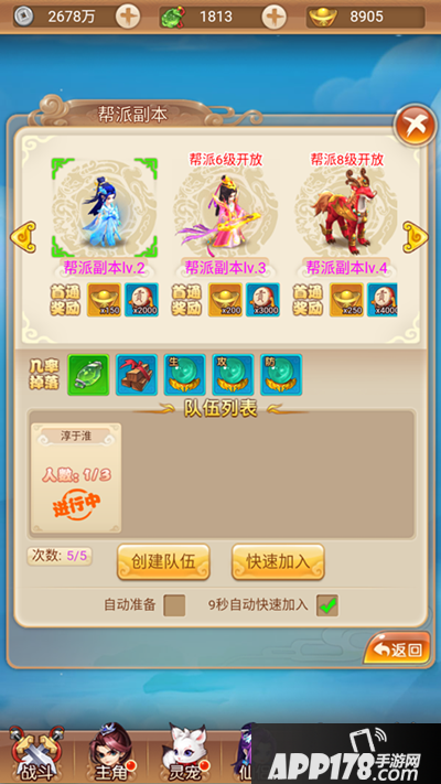 帮派副本包括1~7,7个级别,在帮派等级达到2级的时候,可开启lv1帮派副本。帮派副本的首通奖励和通关奖励都可以获得一定数量的帮贡(首通奖励会多于通关奖励)。而帮派副本仅可帮派成员组队挑战,所以要和自己的帮派小伙伴商量好哦~