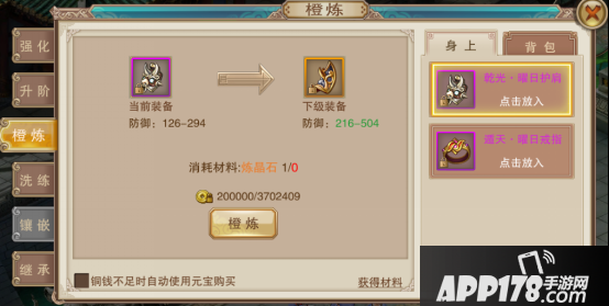 橙炼是将紫色装备升级成橙色装备,需要消耗一定的炼精石。升成橙色后,会提升属性。