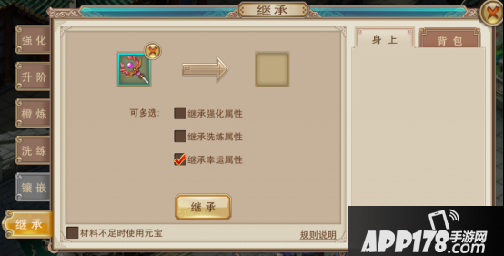 2、必须是同类型装备才能进行传承。