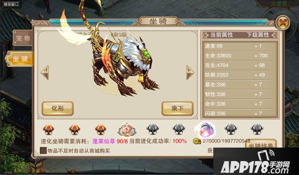 3.升级坐骑消耗蓬莱仙草,坐骑的等级与主角等级无关。