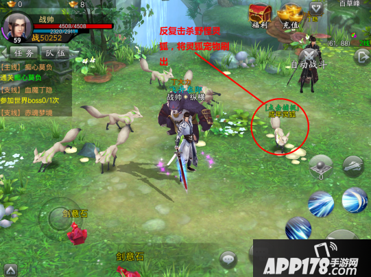 2.到达灵宠出没的地点(可通过右上角地图自动寻路),通过不断击杀对应的野怪将灵宠刷出。