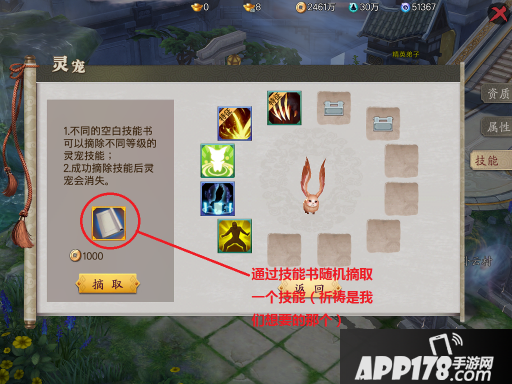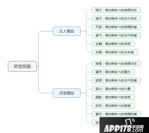 技能书的摘取是随机的,高级技能书能摘取高,中,低级技能,而低级技能书只能摘取低级技能,下面将列出常见的技能供大家参考。技能主要分为给主人提供一定的增益与给灵宠自身提供增益两种。大多技能也对应有高,中,低三种品级之分,同种技能等级越高相应的增益系数N越高。