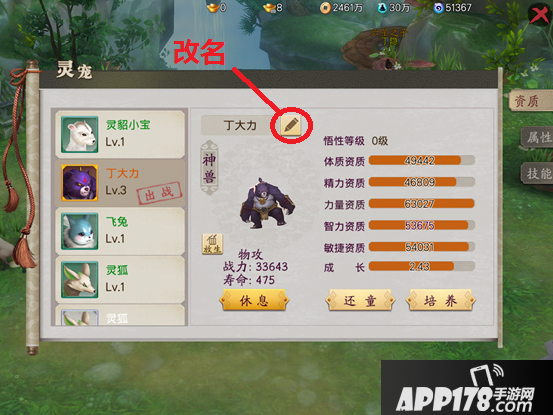 1.改名:玩家可以根据喜好为宠物改名,6个字的长度相信足以为您的宠物起一个霸气侧漏的名字。